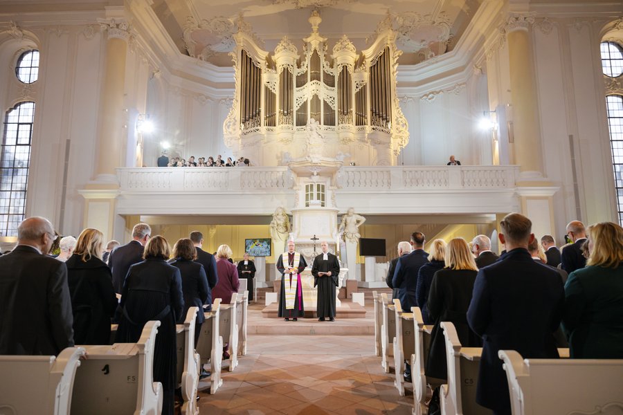Bischof Ackermann leitete den Gottesdienst gemeinsam mit dem Bischof von Speyer, Dr. Karl-Heinz Wiesemann, dem Präses der Evangelischen Kirche im Rheinland, Dr. Thorsten Latzel, und Dorothee Wüst, Kirchenpräsidentin der Evangelischen Kirche der Pfalz (Protestantische Landeskirche). Unter den geladenen Gästen waren unter anderem Vertreter*innen aus Politik, Gesellschaft, Vereinen und Religionsgemeinschaften. So fanden sich unter den Besucher*innen etwa Bundeskanzler Friedrich Merz, Bundespräsident Frank-Walter Steinmeier, Bundestagspräsidentin Julia Klöckner sowie die saarländische Ministerpräsidentin Anke Rehlinger und ein Großteil des Kabinetts.
